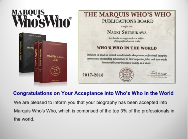 弊社代表の漆川がMarquis Who’s Who in the worldに掲載されました! Who’s Who in the worldとはhttps://ja.m.wi…